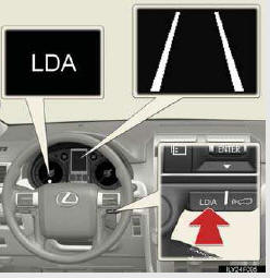 While the LDA system is on, a lane line display is shown on the multi- information display to inform the driver that the LDA system is on.