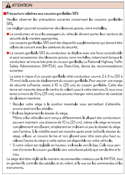 Lexus GX / Lexus GX Owners Manual / For owners / SRS airbag instructions for Canadian owners (in French)