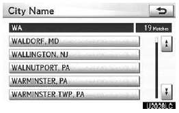 3. Touch the button of the desired city name from the displayed list.