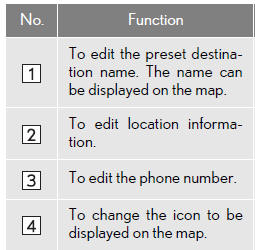 • When registration of a preset destination is completed, the “Edit Preset Destination” screen will be displayed.