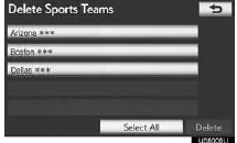 2 Touch the individual sports team to be deleted or touch “Select All” to delete all the teams, and touch “Delete”.